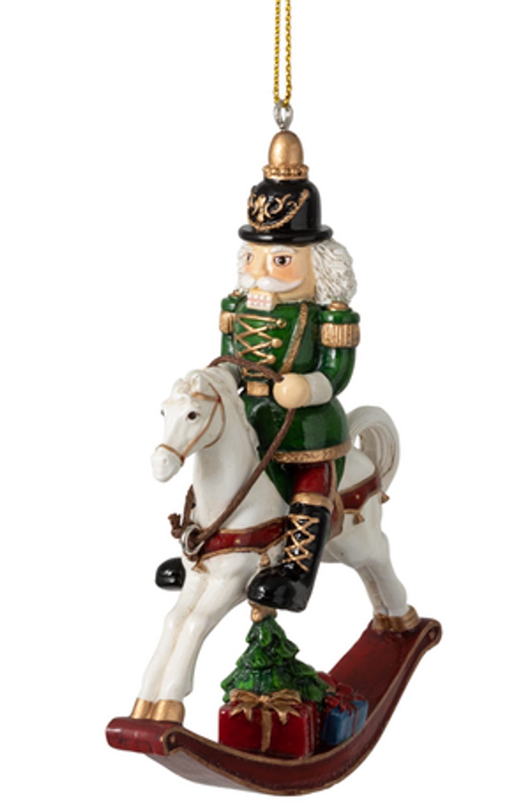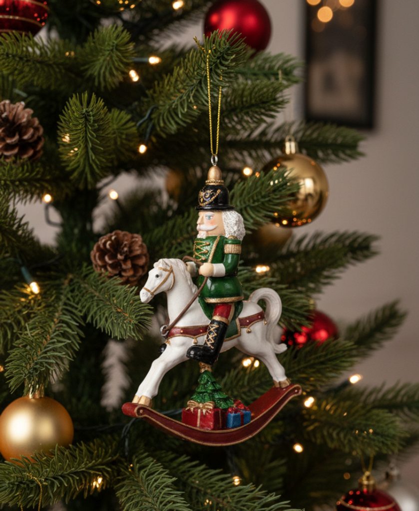 Ozdoba na stromček Luskáčik na koni na zlaté stužke patrí do vianočnej kolekcie Winter Collage Accessoires nemeckej porcelánky Villeroy & Boch.