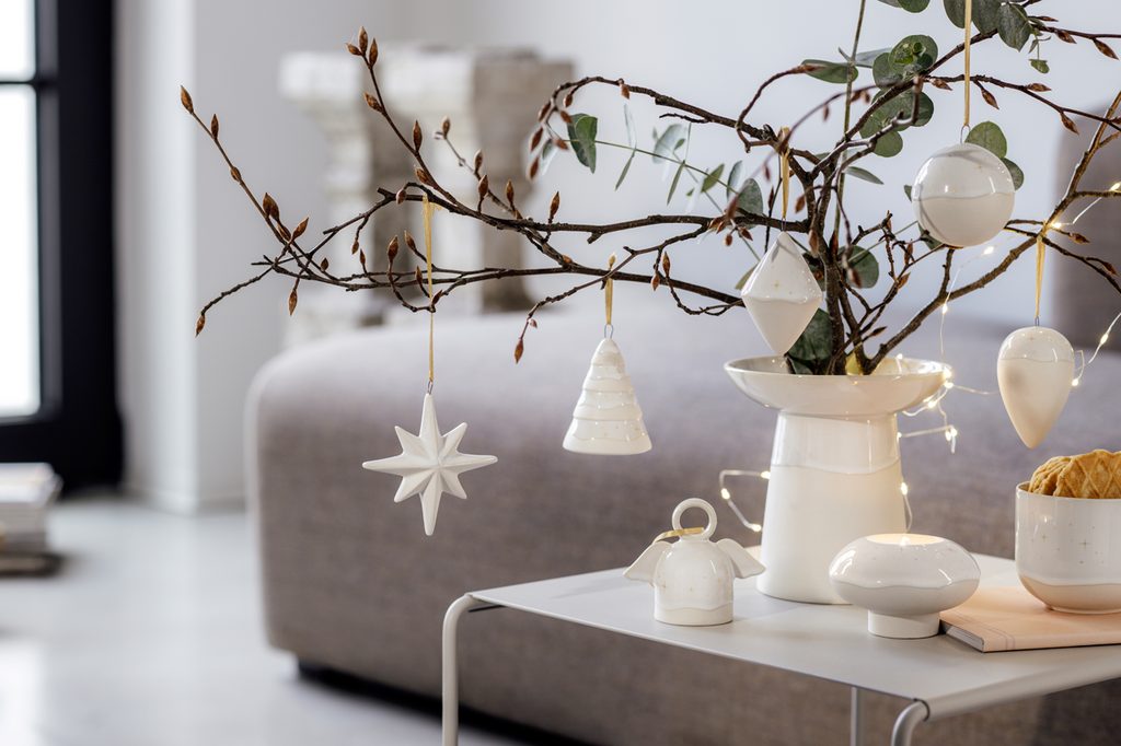 Porcelánová vianočná ozdoba v tvare kvapky patrí do vianočnej kolekcie Winter Glow nemeckej značky porcelánu Villeroy & Boch.