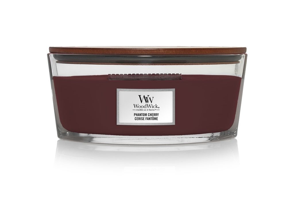 Vonná sviečka v tvare lode s dreveným knôtom WoodWick s vôňou Ghost Cherry. Hlboko v Čiernom lese sa rozlieha temná a nádherná vôňa, ktorá naplní vzduch sladkosťou. S vôňou tmavej čerešne, jantárového dreva, kašmíru a dymovej vanilky preniká hustými stromami niečo prízračné.
