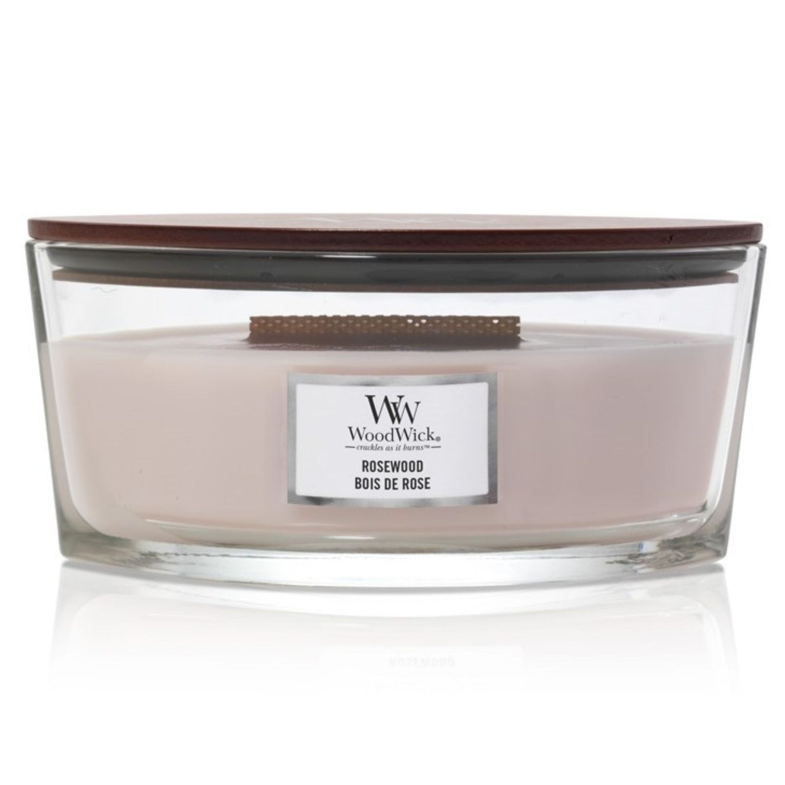 Vonná sviečka v tvare lodičky s dreveným knotkom WoodWick s vôňou palisandra. Roseberry a jemný čajový akord sa spájajú s vôňou cédrového dreva a pižmovými tónmi.
